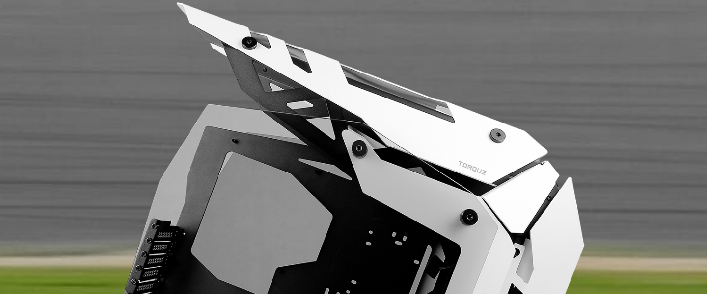 The Torque sports a unique mid-tower sized, open-air design, with a forward-tilted motherboard position, aggressive speedy lines, and plenty of features designed for modern high-performance PC builds.